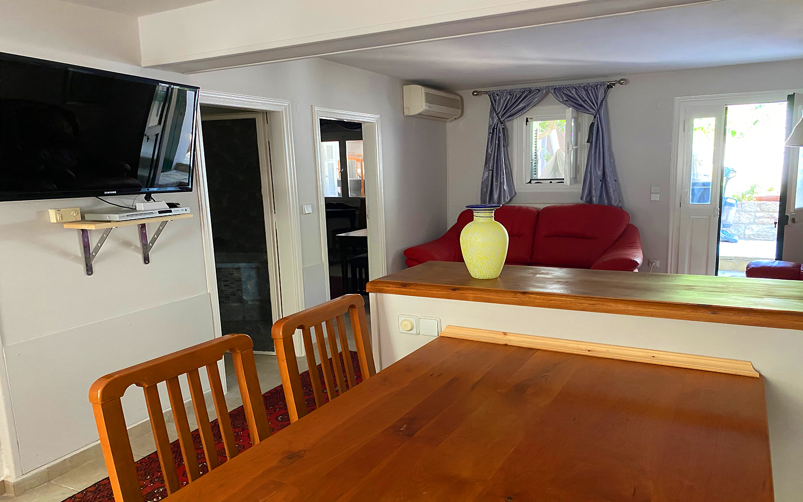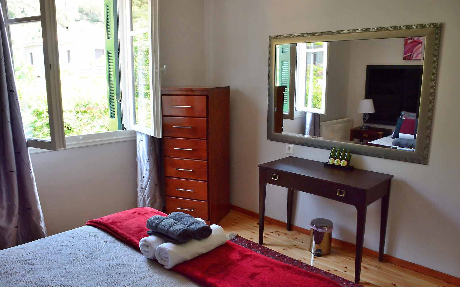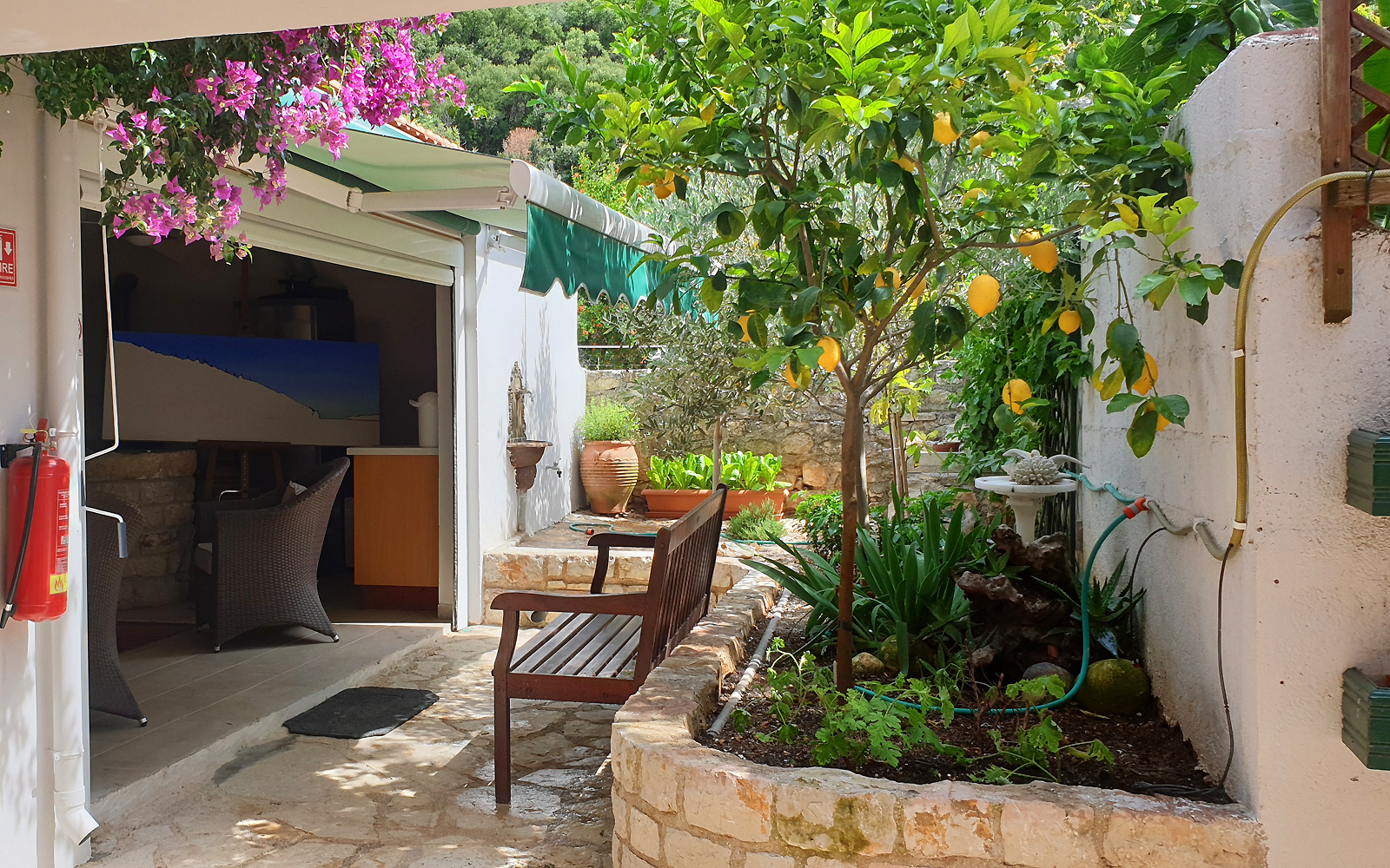 Byron House is centrally situated in the historical village of Kioni, a stone's throw from the harbour, restaurants, bakery, and supermarket. The swimming beach is 30 meters from our gate. The village is abuzz in summer with visiting yachts anchoring in the harbor. The Venetian architecture, combined with lush forest type vegetation and picturesque scenery, make it a fine artist's paradise. Walking amongst the Cypress trees in the forest, the sound of traditional goat bells can be heard. Staying at Byron House in Kioni will be a truly memorable experience.