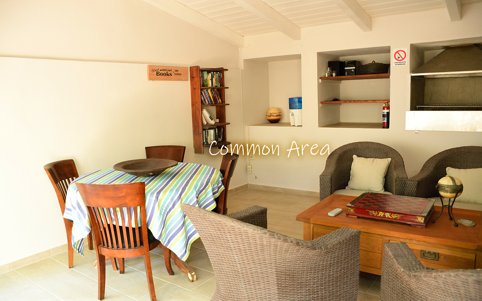 There is a common area patio where you can relax in the shade with games and outdoor kitchen.